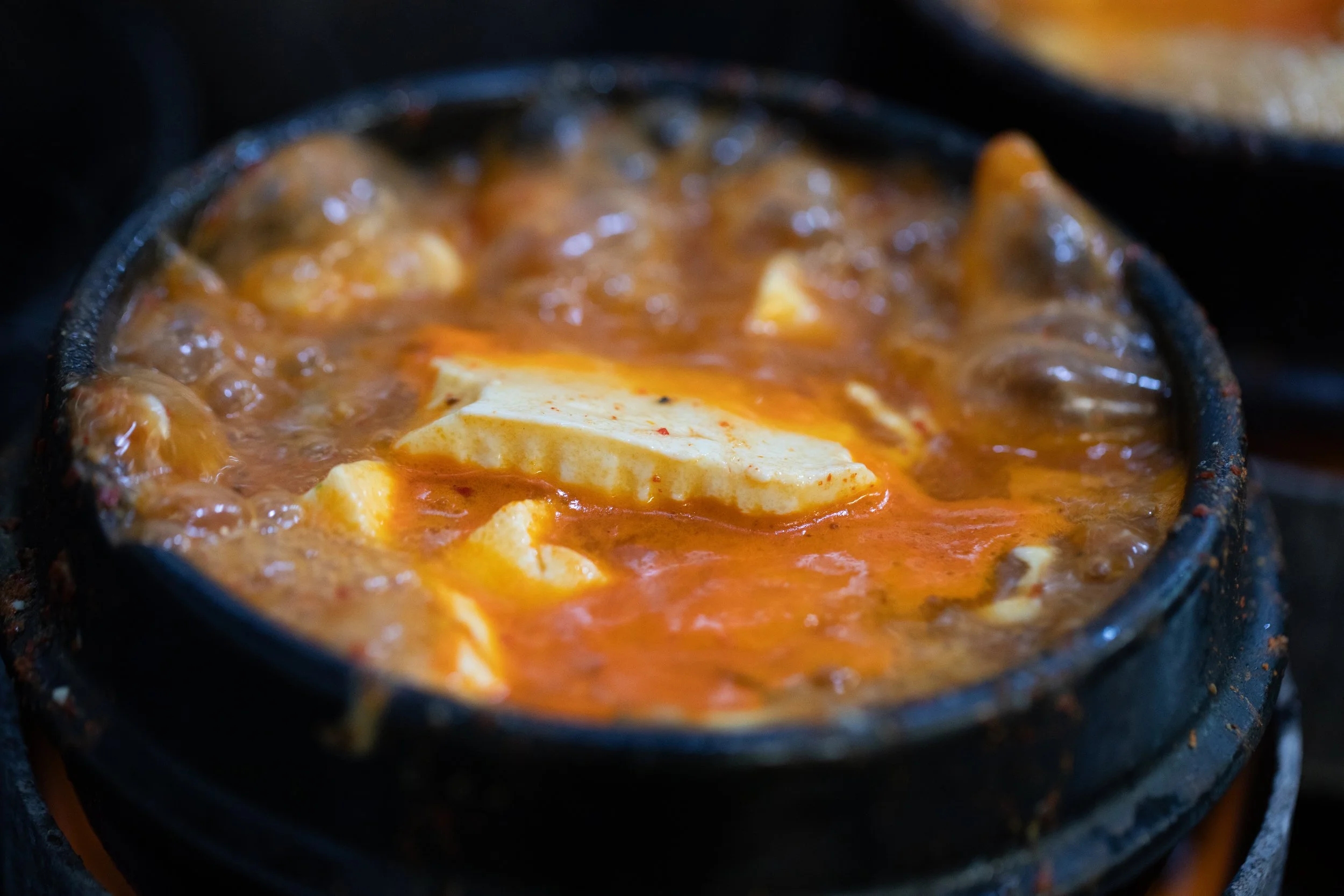 A traditional Korean soft tofu stew with a deep, savory broth and delicate flavor.